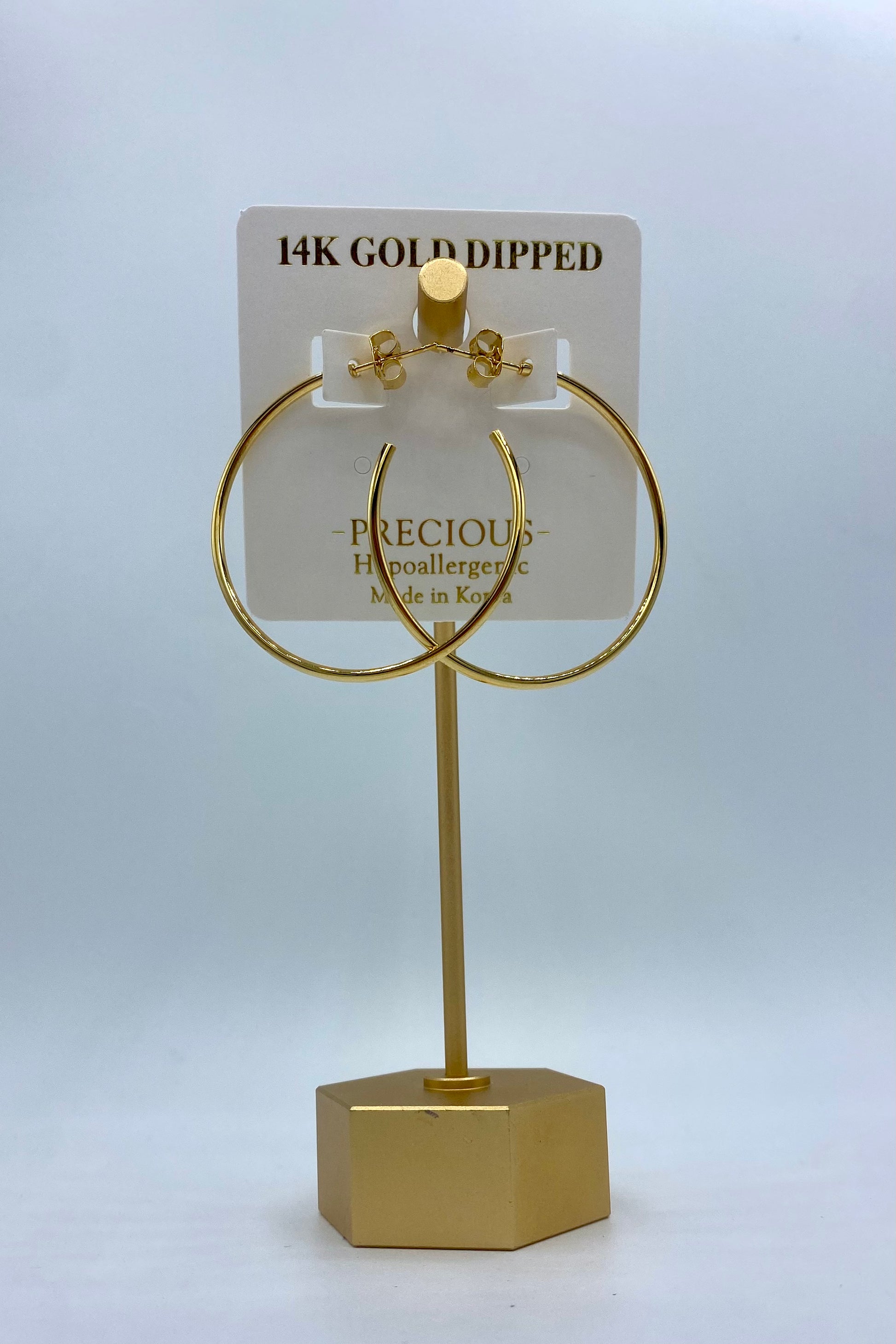 Elevate your elegance with these 40mm Open Hoops, designed to offer a timeless and refined accessory for any occasion. Their sleek, open design sits comfortably while adding a subtle statement of sophistication to your look. Perfect for day-to-night wear, these hoops effortlessly complement both classic and contemporary ensembles.