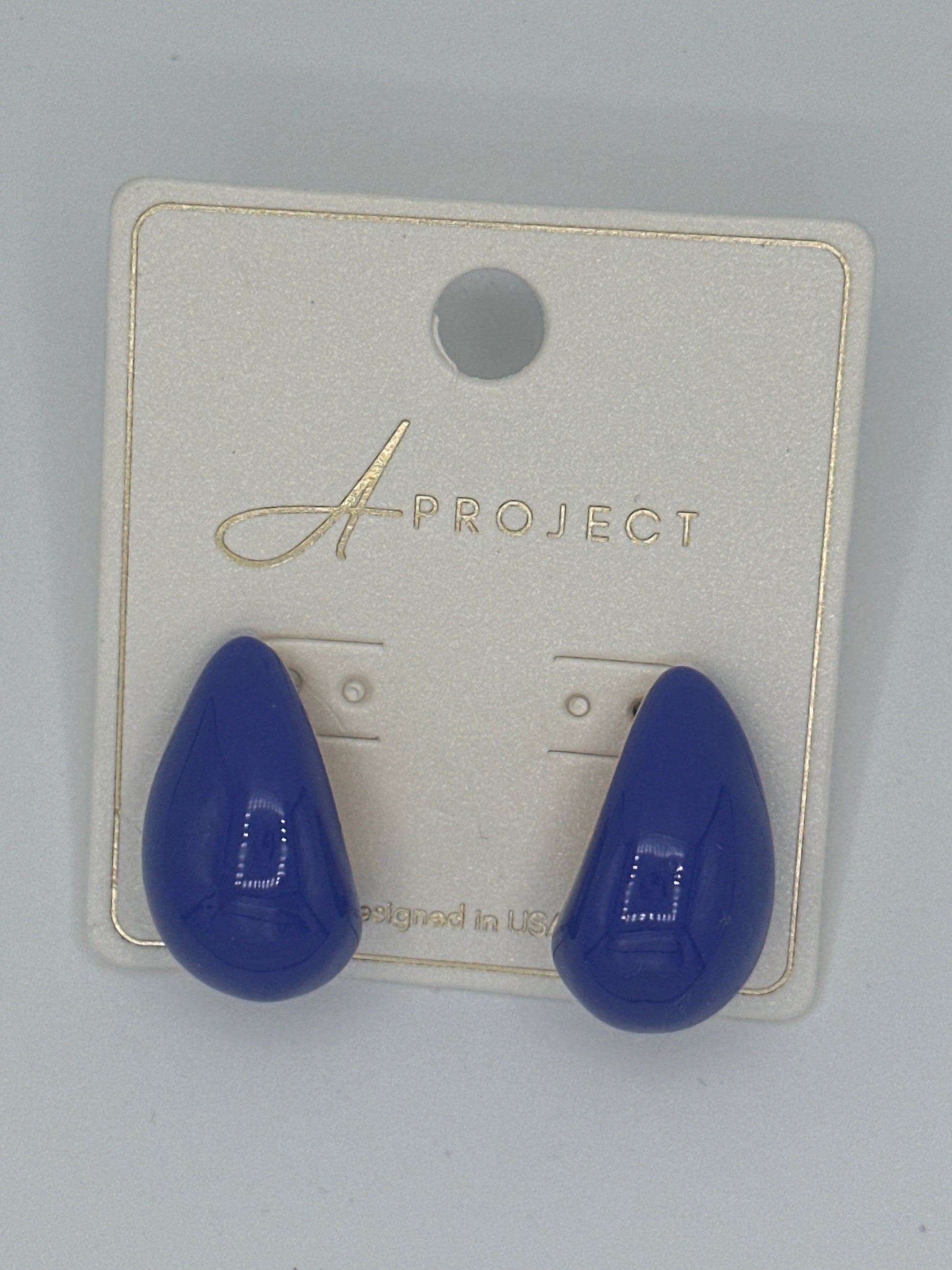 Add a splash of fun to your look with these epoxy blue puffy teardrop earrings. Their vibrant blue hue and playful teardrop shape make them the perfect accessory to brighten any outfit. Lightweight and comfy, they’re ideal for dancing the day—or night—away in style.
