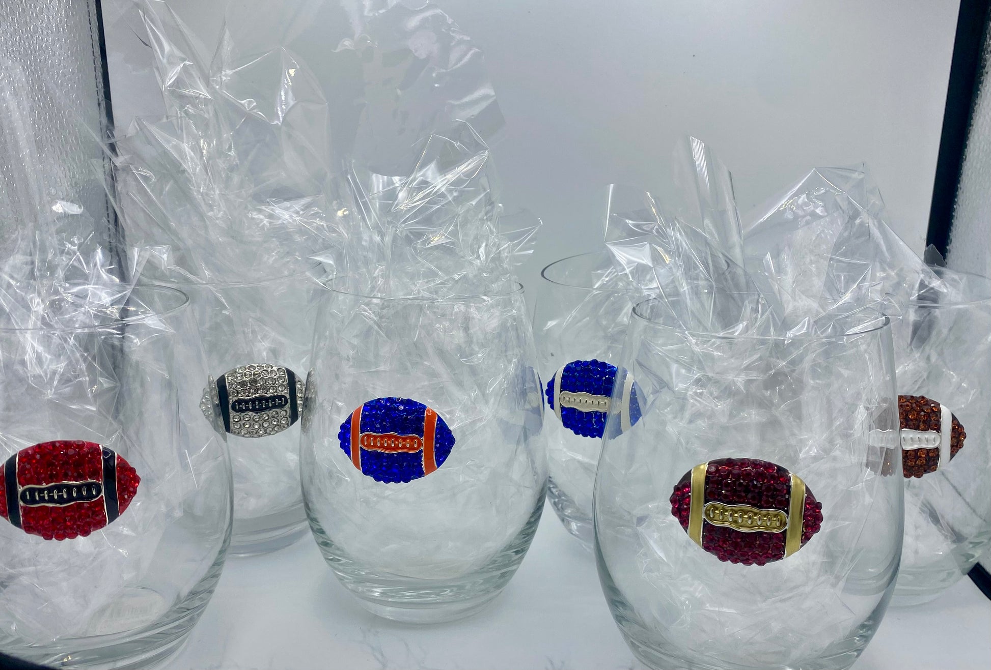Game Day Jeweled Football Stemless Wine Glass