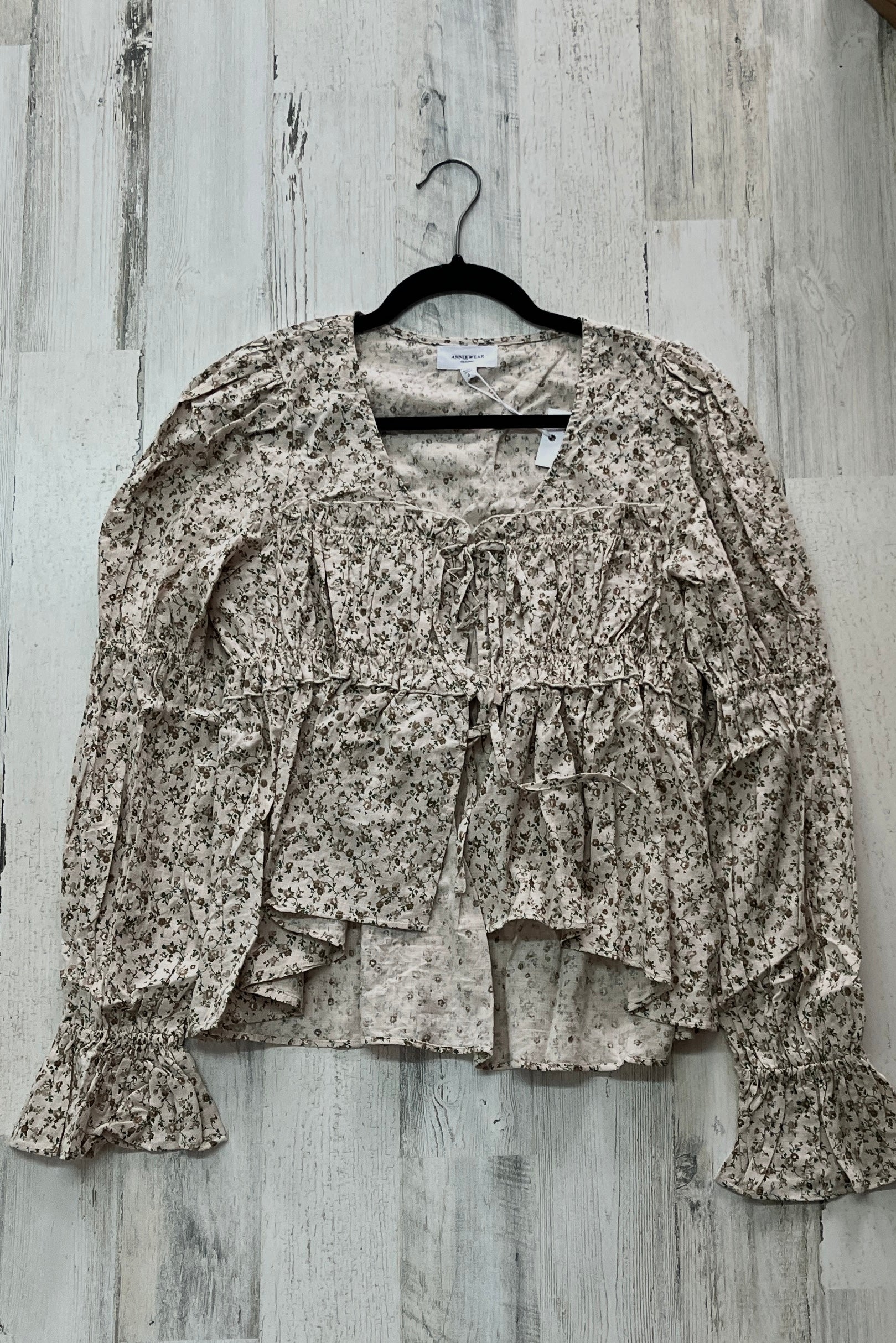 This Ditsy Print Front Tie Ruched Detail Blouse features a delicate floral pattern paired with a front tie closure for adjustable styling. Its bubble sleeves and ruched detailing create a refined silhouette while offering a relaxed fit for comfortable wear. Ideal for elevating both casual and dressy looks with subtle, expert craftsmanship.