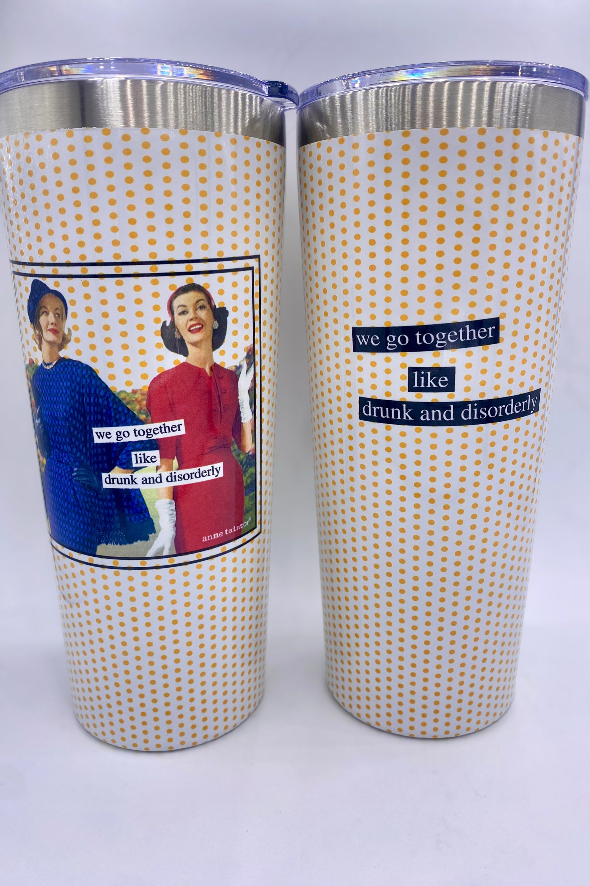 Bring the party wherever you go with the 'We Go Together Like Drunk & Disorderly' Tumbler. This cheeky cup keeps your drinks just right while reminding everyone that some friendships are best enjoyed with a little chaos. Perfect for those who know that laughter—and a good drink—go hand in hand.