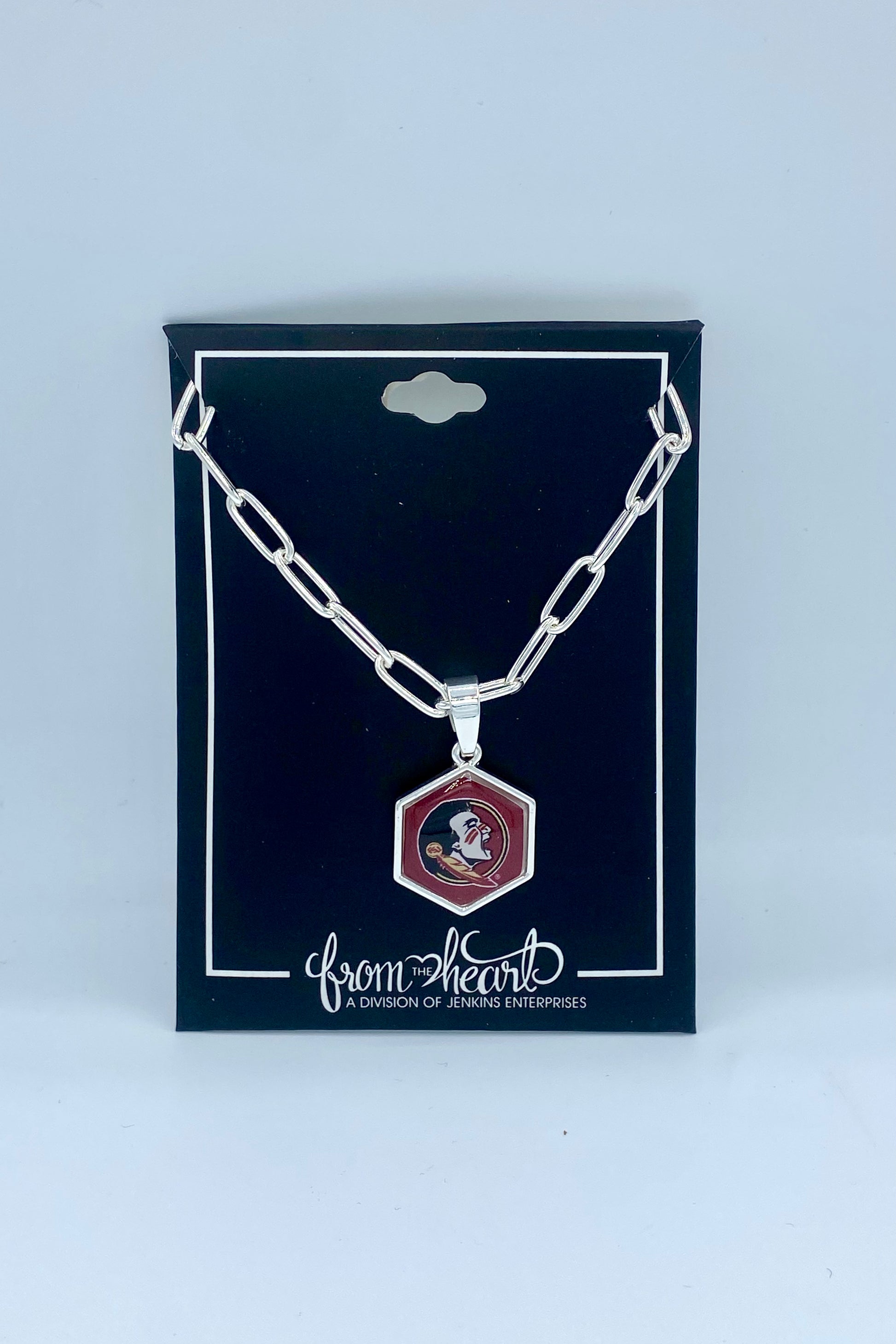 Show your team spirit with the Florida State Seminoles Juno Necklace. Expertly crafted, this necklace features a sleek design representing the Seminoles with subtle elegance. Perfect for everyday wear or game day, it allows you to display your loyalty in a refined and stylish manner. Durable and comfortable, it combines quality craftsmanship with a passionate nod to your favorite team.