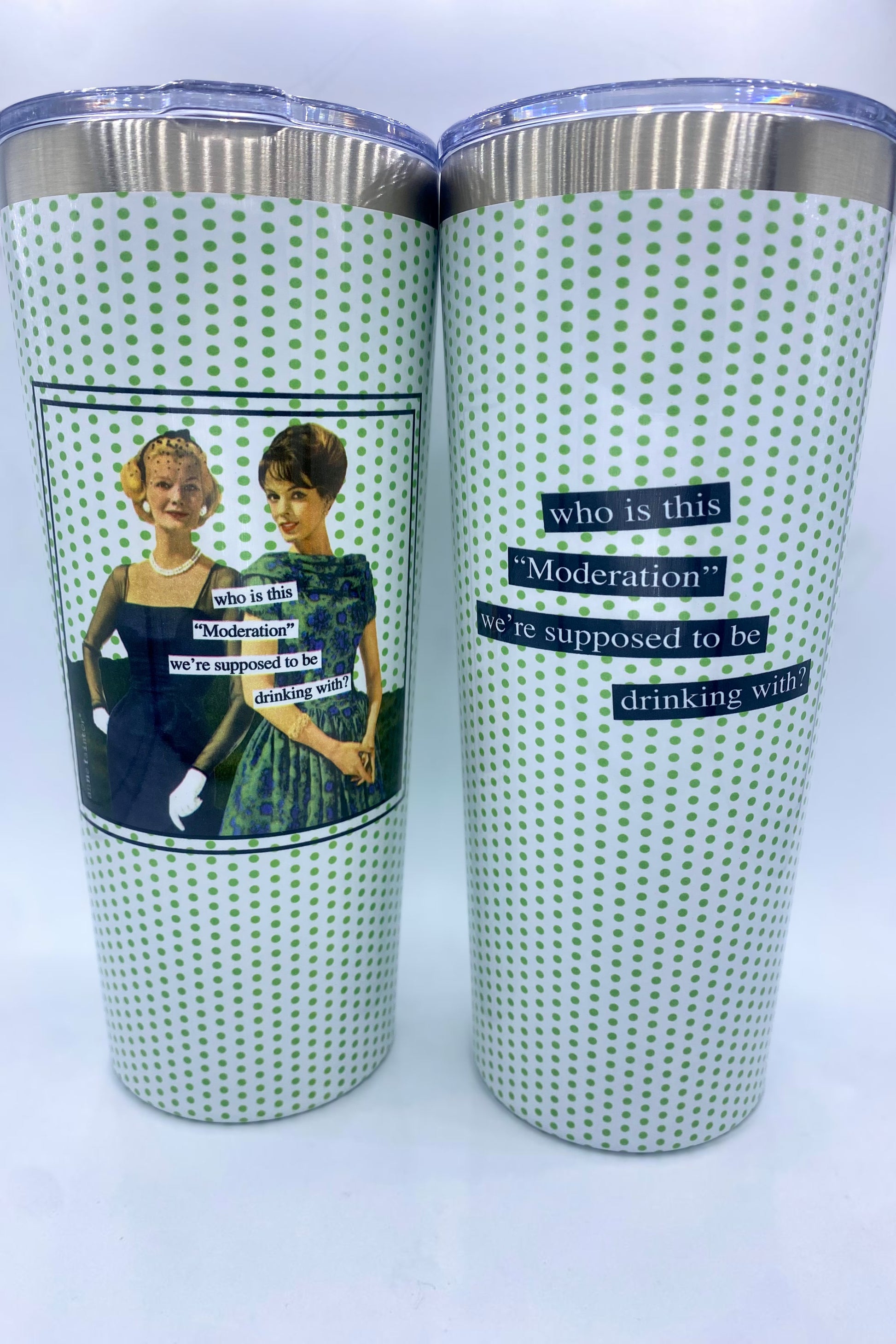 Enjoy your favorite drinks with a wink and a smile using the "Who Is This Moderation We're Supposed To Be Drinking With?" Tumbler. Perfect for those who prefer fun over fuss, this tumbler keeps your beverage just right while giving you a cheeky conversation starter. Whether at a party or relaxing solo, it’s the perfect companion for anyone who knows life’s too short for boring sips.