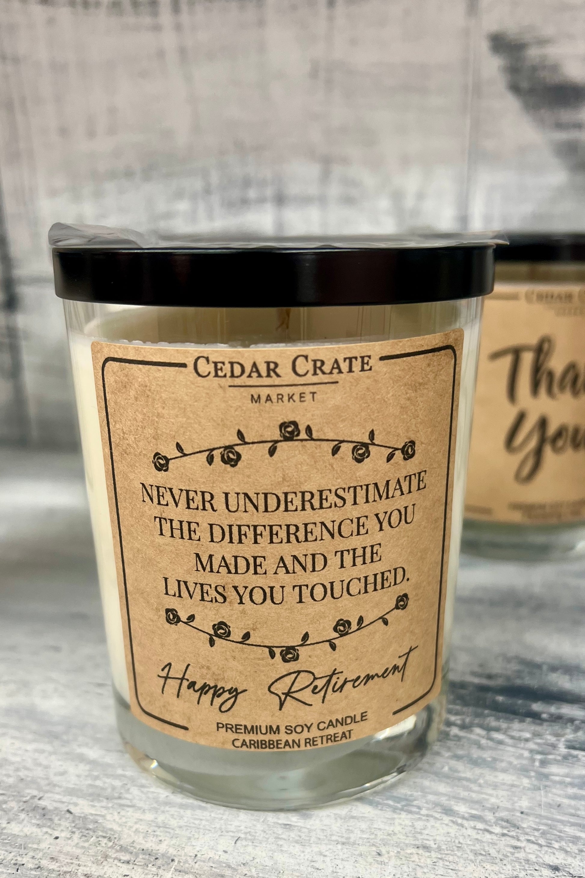 Experience the calming essence of the Caribbean Retreat with the "Never Underestimate the Difference You Made" candle. Expertly crafted to evoke serene island breezes and tropical warmth, this candle transforms any space into a peaceful sanctuary. Its carefully balanced fragrance promotes relaxation and mindfulness, making it an ideal companion for moments of reflection and tranquility. Elevate your environment with this sophisticated scent that subtly reminds you of the positive impact you create.