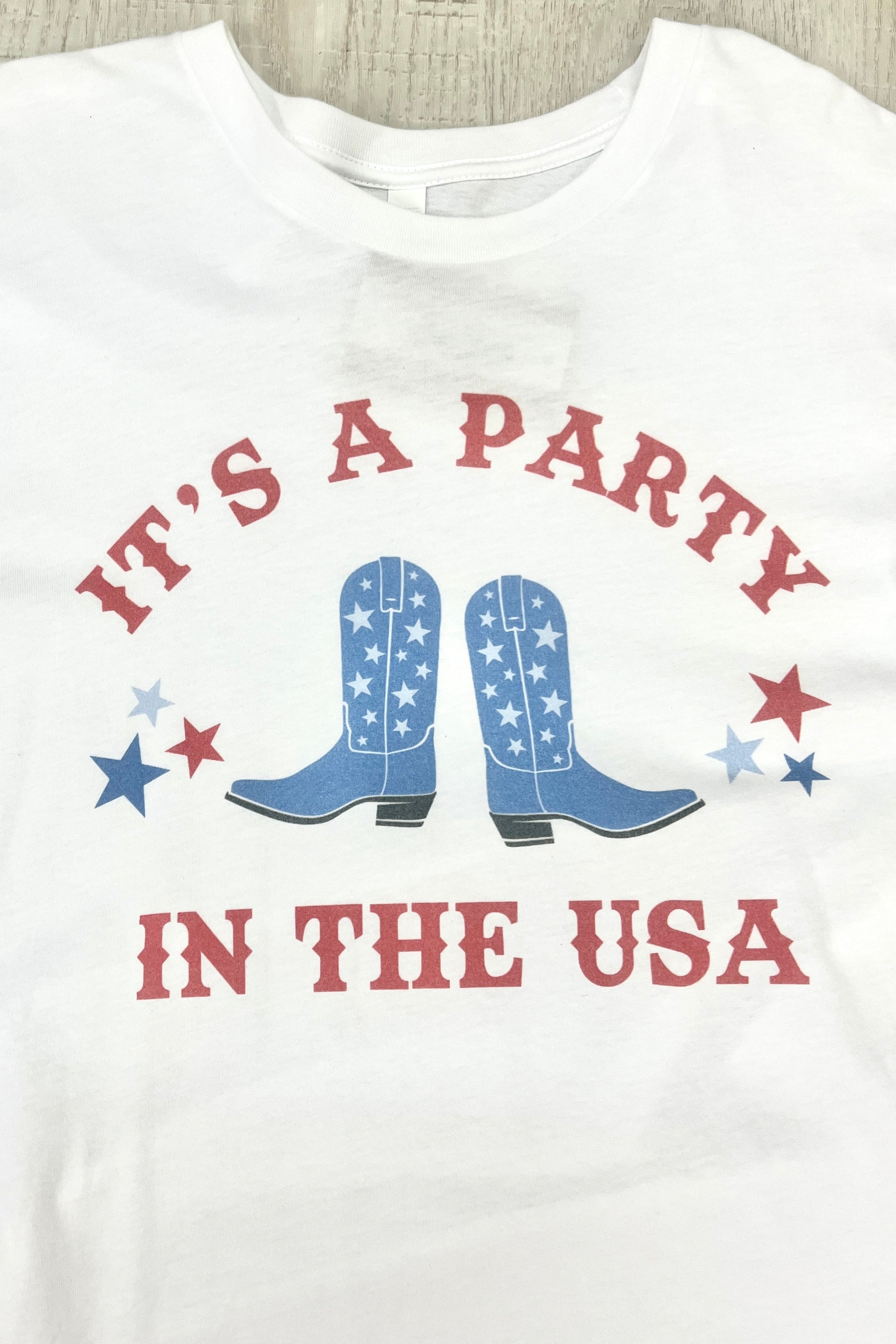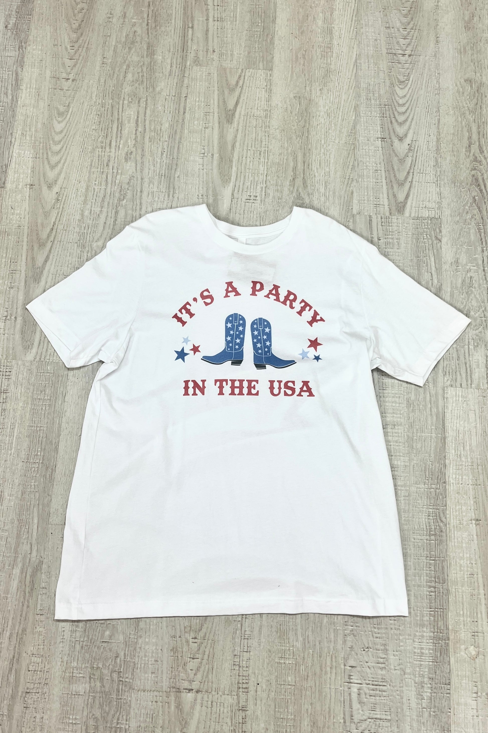 Celebrate your patriotic spirit with the "Party In The USA" Graphic Tee. Crafted from soft, breathable fabric, this tee offers all-day comfort while showcasing a bold, stylish design perfect for casual outings or festive events. Its durable print maintains vibrant colors wash after wash, making it a reliable choice for expressing your love of the USA with confidence and flair.