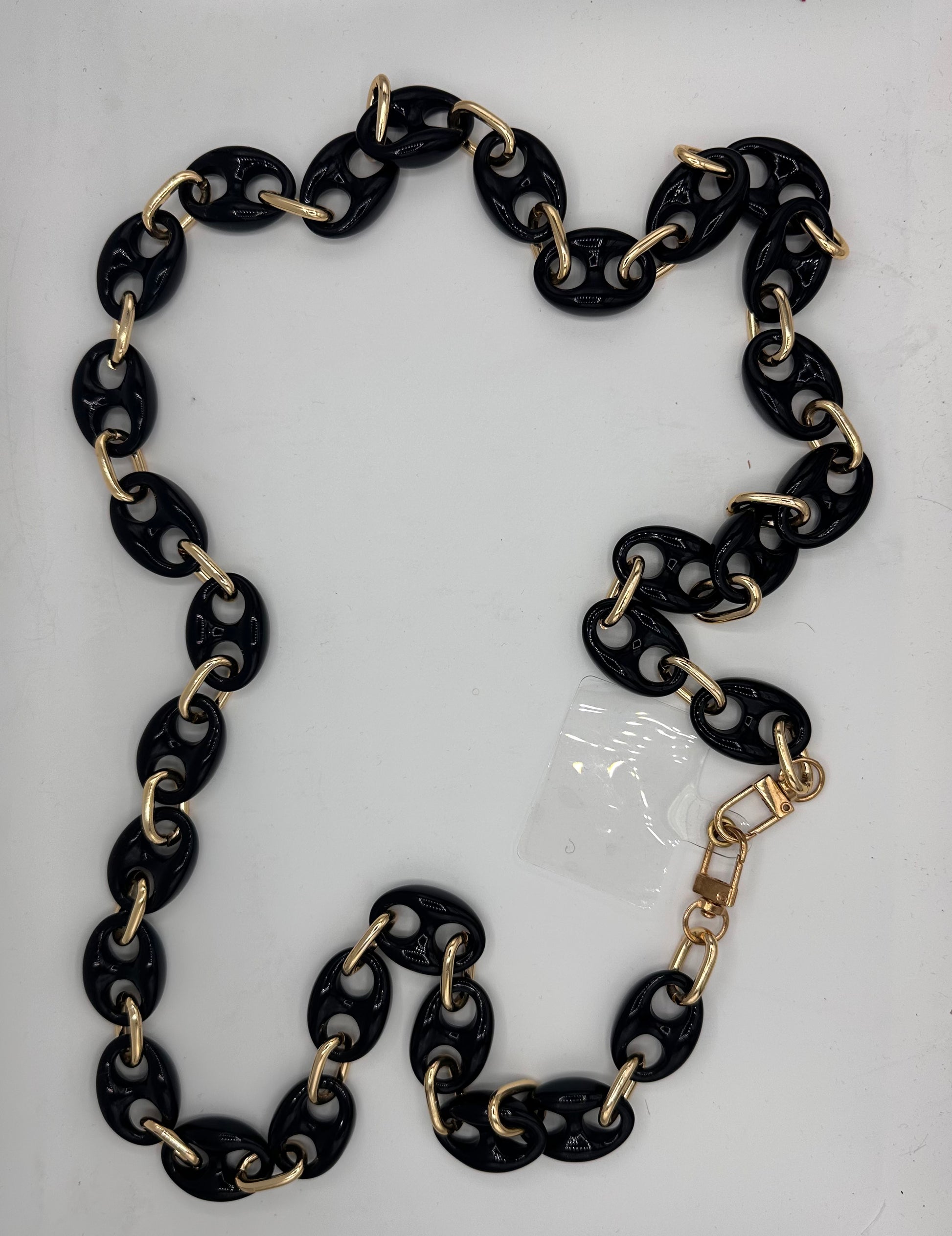 The Phone Chain Crossbody combines functionality with modern style, offering a hands-free way to carry your essentials securely. Featuring a durable chain strap, it ensures your phone stays accessible while freeing your hands for daily activities. Its sleek design complements any outfit, making it ideal for both casual outings and professional settings. Crafted for convenience and elegance, this crossbody ensures your device and small valuables are always within reach without compromising on sophistication.