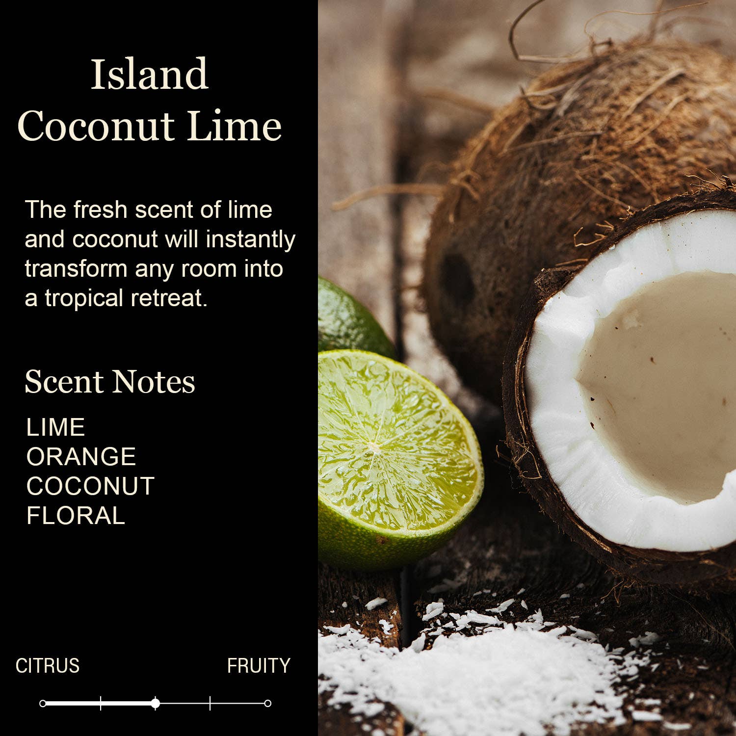 SCENT: #18 Coconut Lime. The fresh scent of lime and coconut will instantly transform any room into a tropical retreat.