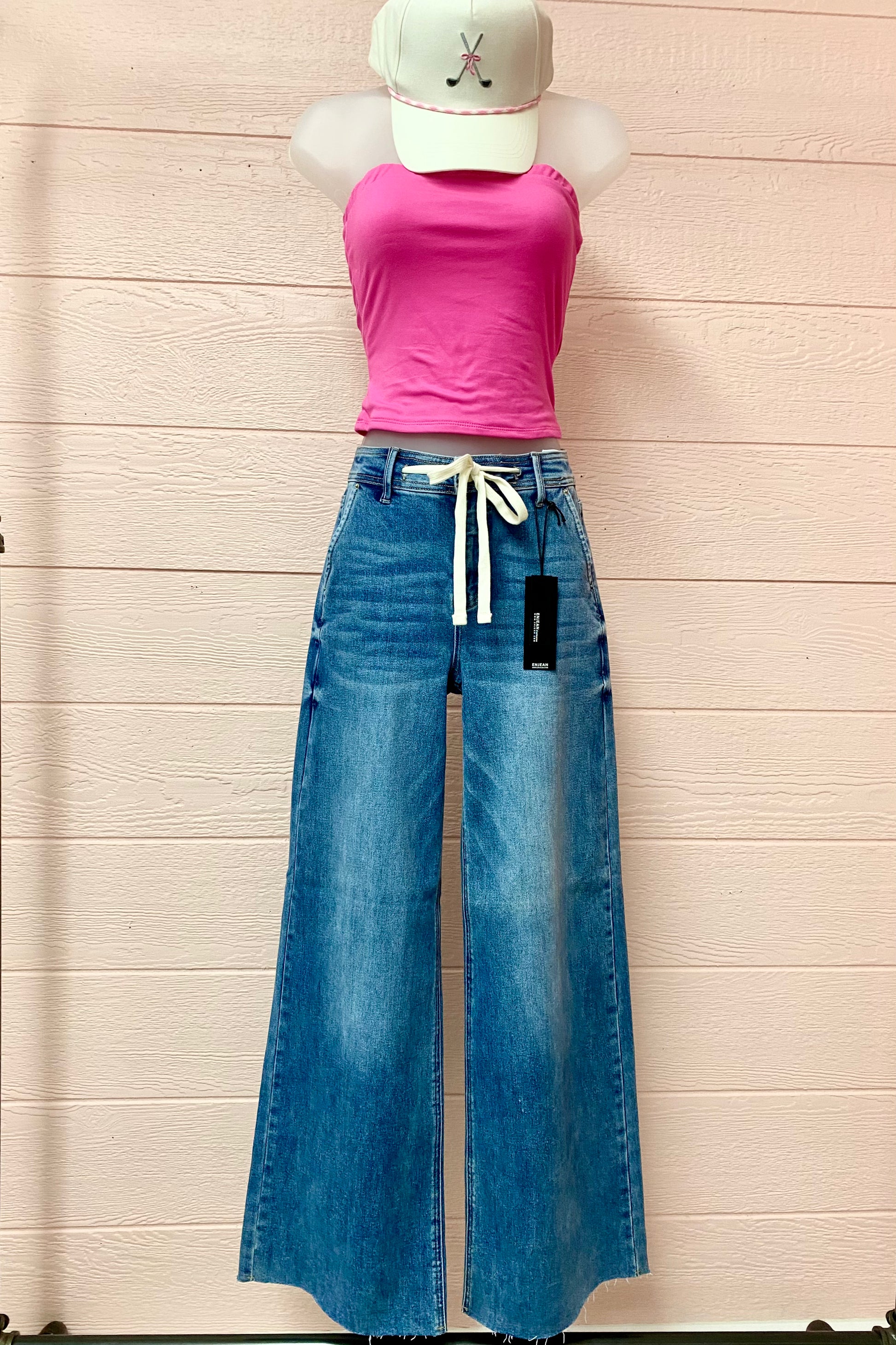 These Wide Cut Shoelace Medium Wash Jeans combine a relaxed silhouette with contemporary style. Crafted with a medium wash, they offer a versatile look that suits various occasions. The distinctive wide cut enhances comfort and movement, while the shoelace detail adds a subtle, modern accent. Designed for those seeking both fashion-forward aesthetics and practical wearability.